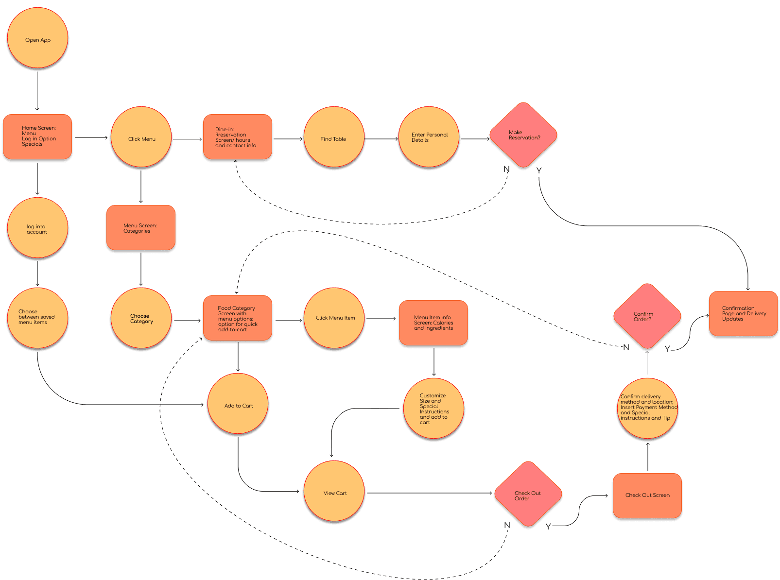 The user journey map was continued to inform decision making for the user flow diagram.