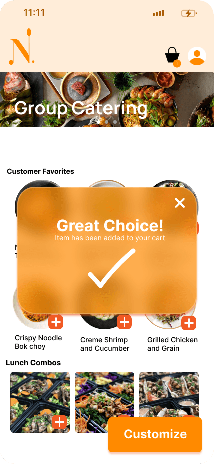 Customize Order Screen
