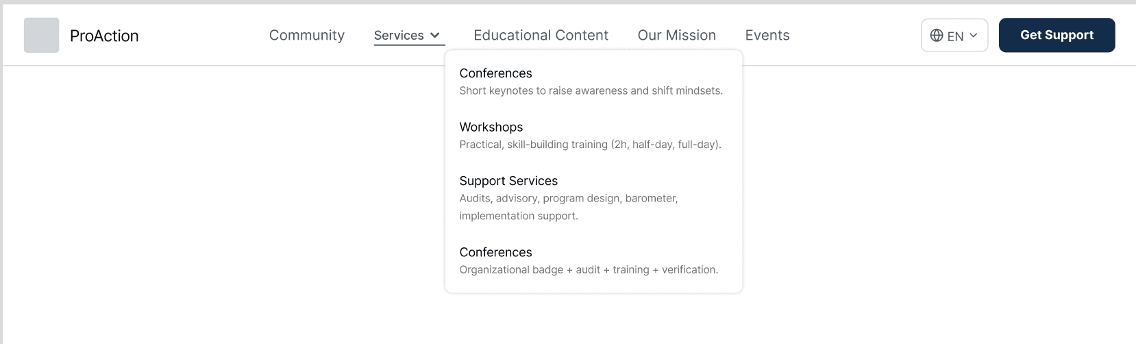 Users were all confused about services and support terminology, believing that both should lead the user to the same solutions